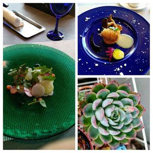こんばんは〜😃。先日行ったレストランのランチと多肉さん🍀(センセプルプ)💃。