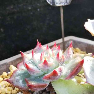 おはよぅございます☁️ おとといお水あげたのに、雨に合わせちゃった🤭 おっきくならないでね😅 いい感じに赤いお爪になってきたし、下のお子ちゃま達も大きくなってきました☺️