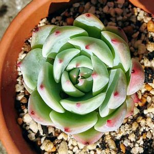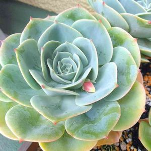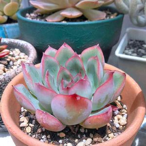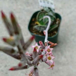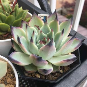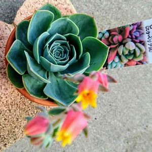 こんばんは。エケベリア、七福神さま。 一回、溶けてしまった苦い経験あり😭。 またまた、お迎えしました🎵。お花も可愛い、ロゼットが、美しい~💞