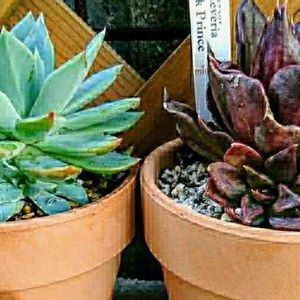 こんにちは~😃。 エケベリア、ブラックプリンスです。 この前は、お子さまができて、別々にはなし、そして 今度は成長点3つになってます。これからどうなるのか……。 動きの多いプリンスさんです(#^.^#)。