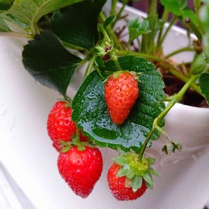 苺🍓初なりです❣️ 今年初めて苺苗を買いました。 サントリーの「らくなりイチゴ」 植えてすぐに花がつき3週間ほどで真っ赤に熟れてご覧の通り美味しそうになりました😋 (本当は春まで株を太らせるそうで、花も実もつけてはいけないらしく、これ以外は全部摘芯しました) 甘酸っぱい苺の香りがちゃんとしました👍 甘さは…🤔…⭐️かな? コキアがこの子だけ真っ赤になりました💔 巨大化していたお仲間たちは一部分だけ赤くなったまま星🌠になりました😥 ボンザマーガレット「ルビー」は園芸店を3件回ってやっと出会えたものです❣️ とても色が綺麗で成長が楽しみです🎶 サフィニアJAPANレッドはいまだに現役で咲いてくれています❤️ まだまだ蕾もたくさんついているので、もう少し頑張ってくれそうです💪 撫子も、セロシアスマートルックも秋のお庭のアクセントとして頑張ってま〜す👍 🏷真っ赤な❤️火曜日に参加します😍