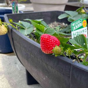 🍓らくなりいちご🍓 だいぶ、赤くなってきました🍓 今日2個は収穫できそう😋