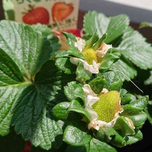 サントリー本気野菜らくなりイチゴ🍓の花が咲きました😃 四季なりイチゴです。 8月中は週5個ぐらいのペースで収穫できたと思います。 子供がみんな食べてしまうので たまにしか味見ができません🙀食感はいいですが、酸っぱいです。 肥料をちゃんとあげないと甘くならないのかな🤔