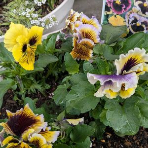 雨上がりのビオラ、パンジー 急な寒さ、雨にも負けず元気です。 おまけでプリムラも😊