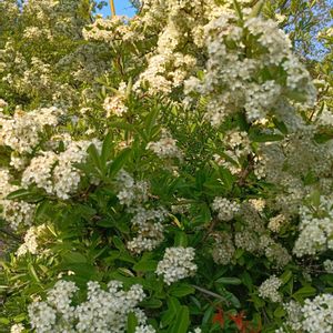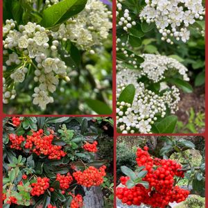 12月6日 今日のお花 🔴🟠(*˘︶˘*).。.:*♡♡🌿 別名 ヒマラヤトキワサンザシ 開花期 5月 花色 白 樹高 1〜5m 春に白い花を咲かせ、枝には鋭い棘がある。実は冬には赤く熟すが別種に黄色、橙色のものもある。 1️⃣2️⃣2025.5月撮影 3️⃣4️⃣5️⃣今開花中
