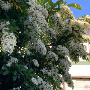 枝に棘がいっぱいの 🍀ピラカンサの花が満開でした