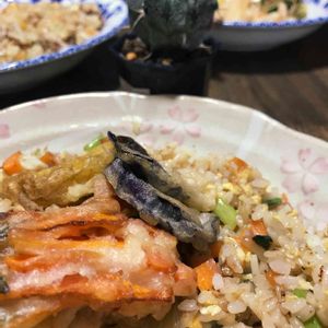 そして今朝の朝食は、炒飯の天麩羅載せ。 向こうに見えますのは、サボテンの般若様ですが、思ったほど暴れてくれません。