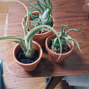 こちらの上と右下はダイソーのカプトメデューサですが、 左下も同じでしょうか?🙄 この子はHCで名無しで300円でした🤗 色が少し薄い黄緑で、大きいですけど、他のより葉が少ないんです😅 チランジア得意の方良ければ回答お待ちしています🙇