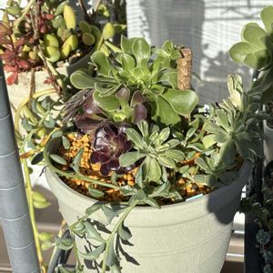 おはようございます😌 久しぶりの多肉さん✨️ あれから4ヶ月、無事に昨日引き取りまして我が家に戻りました。先週一度、霜降りちゃったと息子から連絡あり、微妙な被害はありましたが。。なんとかひと安心😌 今回は妹に🚙を出してもらい同行してもらいました。帰りにもう植木屋じゃんと、笑われました💦そして私以上に孫にデレデレでした~😳