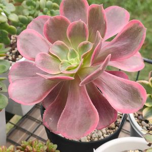 アエオニウムのメデューサさん💖 9月に投稿した時(右pic)よりツヤツヤして少し大きくなりました🤩 2枚目pic 白い子株ちゃん🩷 お日様が当たらないから白いのかな〜💦