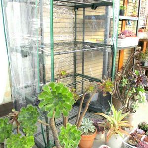 多肉たちの会話 「風避けに設置したんだってさ」 「まだ 誰も入ってないじゃん」 「お前 1番に入れよ!」 「嫌だよ アンタが先に入んな」 「まだ昼間は暖かいからいいんじゃないん」 「そうだよ のぼせるぜ」 なんか 多肉たち ゴチャゴチャ言ってますが そろそろ(来週あたり)出番になりますかね〜 簡易ハウス! 主な住居はエケさんたちに なります! 入居者募集中で〜す