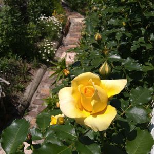 開きそうで切れません😆 調子を崩した ラベンダーピノキオ 秋にたくさん蕾をつけています。 そろそろカットしようと様子を見に行くと 開き始めてました🌹 黄色いつるゴールドバニーも高い場所でチラホラ花をつけています。 写真は低い場所だったのでパチリ📷 そろそろココロを鬼にして👹 剪定しようかな?