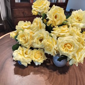 強風注意⚠️ 昨日は埼玉は風が強かった🌪️ つるゴールドバニーの枝が ブンブンゆすられているので 慌てて止めつけました。 強引に引っ張ったからか 風に煽られてか 期待の太いベイサルシュートが 裂けてました😢 ビニールテープで応急処置したけど 期待の枝だったので 枯れないと良いなあ 上の方で咲いていたゴールドバニーを切り花にしました。 いい香りです❤️