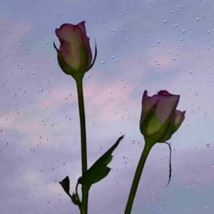 雨上がりの ほんのひととき 明るみ帯びた 夕空と薔薇