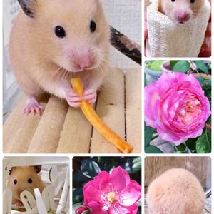 こんばんは〜〜(*´∀`)♪💕 今日のお花 ミニバラでしたね〜〜😊🎶 うちのお庭の今日のミニバラさんたちと🌹✨ ひま種をホッペに入れすぎて 現行犯逮捕された ちよまる です 🐹💦