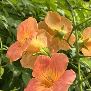 今日のお花 ⁑ ノウゼンカズラ🌸🌸 ノウゼンカズラ×3 (自宅庭) アメリカノウゼンカズラ×2 どちらも良く似てますけど違いはあります。 凌霄花 ⚫︎⚪︎⚪︎⚪︎⚪︎