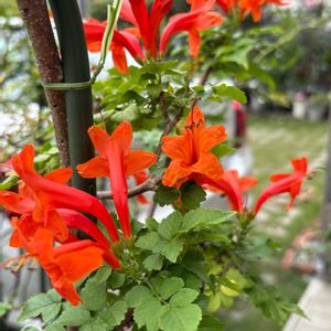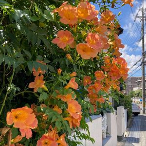 散歩道に咲いてます🐕🐾 ❤️姫凌霄花(ヒメノウゼンカズラ)❤️ ノウゼンカズラ科テコマリア属 半つる性低木