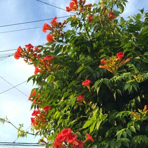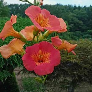 弘法山 アメリカノウゼンカズラ(亜米利加凌霄花)、ノウゼンカズラ科カンプシス(ノウゼンカズラ)属の落葉性の落葉つる性木本、別名 コノウゼンカズラ 🌼花言葉 「華やかな名誉」 🌼ノウゼンカズラとは別種