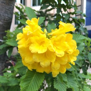 おはようございます。仕事でカンボジアに来ています。時差が2時間あるので今は当地では7時過ぎです。カンボジアには雨季と乾季と暑季があります。今は、雨季が終わって比較的過ごしやすい気候です。今日の投稿はノウゼンカズラの仲間のキンレイジュ(金鈴樹)です。泊まったホテルの中庭に咲いていました。葉の鋸歯が特徴的です。 2018/12/18 カンボジア プノンペンにて撮影。🇰🇭 ノウゼンカズラ科テコマ属 Tecoma stans