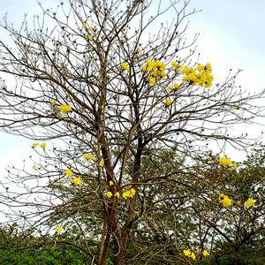 イペーが咲き始めました❀.(*´▽`*)❀. 黄色の大きなお花は🎺トランペットのように見えて、満開時、遠くから見るとイチョウ🌳に見える( 私だけ?! )ブラジルの国花です(˶ᵔᵕᵔ˶)