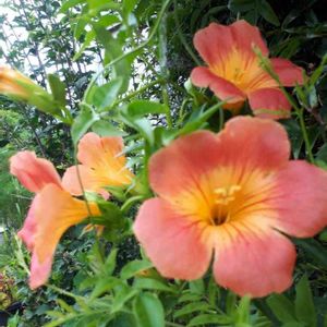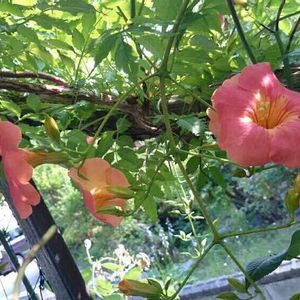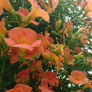 実家のノウゼンカズラ🌼.* リビングの西日よけになります!