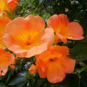 オレンジ色のノウゼンカズラ☀️ ご近所さんの垣根からあふれてました😆