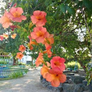 今日のお花は、『ノウゼンカズラ』。 近所の公園なんですけど。 (ФωФ)モッサモサ 咲いてるよ。 小さい頃、ここのプールにはよく遊びに行きました。
