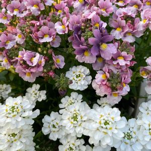 今日のお花🤍✨ イベリス花盛りです💕 どんどん咲くので✂️して 小さな瓶に挿して部屋やおトイレや… あちこちにおります😊 清楚でかわいい🤍💕 ネメシアも一緒です🌸😁
