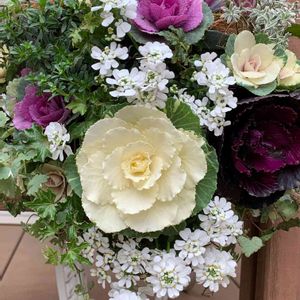 初めてのハンギング🥶 とても大変でした お花もまだ元気ないので 後日アップしようと思いましたが 今日のお花に参加したくて 恥ずかしながら( ⸝⸝•ᴗ•⸝⸝ )੭⁾⁾ 🏷イベリス! 🏷#葉牡丹 🏷今日のお花に参加します