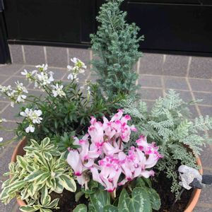 #ガーデンシクラメン #イベリスブライダルブーケ #コプロスマ 。 。 冬でも元気なお花たち! 可愛いブリキ鉢も いろいろ用意しております😊✨。 。