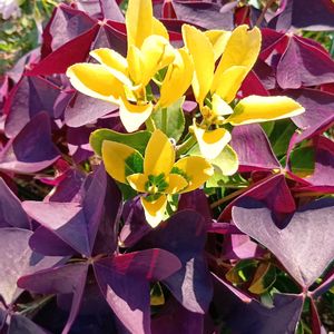 沿道の花壇で出会いマシタ♪✨ ①小さな黄金マサキの株の周りにオキザリス💞💐ブーケみたいですネ😉🙆❇️ ②マサキの実色付きが楽しみ🥳 ③カンナの斑模様🎨素敵だなぁ😚💖 ④斑入り葉📣霜大丈夫かなぁ🪄🤔 ⑤ ☝️とても丈夫ですネ〰🤍🌿✨ 🏷️黄金色の金曜日 🏷️斑入り見つけ隊♪No.19 🏷️2のつく日は斑入りの日