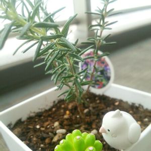 オカメ隊長はよそ見していますが、 ローズマリーはチョロチョロと脇芽を伸ばしてます。 摘心するべきか悩みます。 隊長をよそ見させたのは、娘の仕業…😠💨 まぁでも、隊長が可愛いから許す!