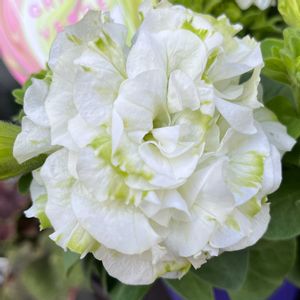 おはようございます😺 ペチュニア『湘南ヴェルデ』のお花がたくさん咲き始めています🤗💚🤍 リーフ達も鉢に馴染んできて夏っぽい寄せ植えになっているかな🤭💚🤍✨