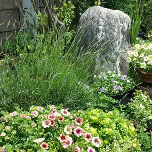 冬の間に小さく切ったラベンダー、ニョキニョキ花穂が伸びています。触るといい香り(*´-`)❤ ペチュニアの湘南ヴェルデも絶好調です☺
