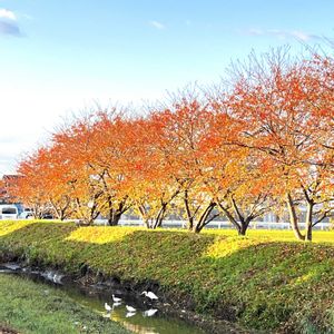 近所の桜の紅葉と うちの玄海ツツジの紅葉🍂 真っ赤な紅葉もきれいだけど、オレンジはかわいいな。 ツボミがたくさんできたんだけど、、、寒すぎる冬を乗り越えてちゃんと咲いてくれますように🙏