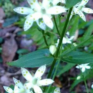 白い花びらを明け方の空に 花びらにある斑点を星に見たてて付けられた名です。 二年草で、1年目はオオバコに似た葉を広げ冬を越します アケボノソウ 曙草 リンドウ科