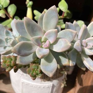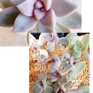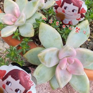 グラプトベリア・桜牡丹さんの紅葉が綺麗です😻💗💚(グラプトペタルム説もあり) 後ろにちょろっと 真ん丸多肉ちゃんの グラプトペタルム・ダルマシュウレイさんが除いてます😸💕 みんなピンクになって来たね😸💕💕