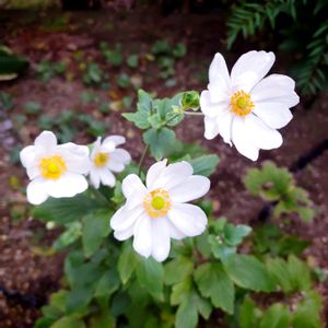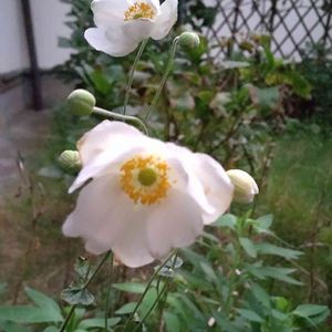 裏庭でひっそり咲いてる白い秋明菊🌼 表に植えたら育たなくて、日陰の身でちょっと可哀想です😟