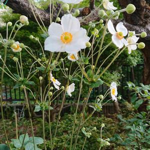 裏庭の白井秋明菊🎵 咲き始めました😃