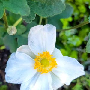 白い秋明菊❀ 一重の秋明菊、黄色い蘂も綺麗です✨ 秋のお花🌾🌰 名前な菊が付いていますが、菊の仲間では無く、アネモネの仲間です💠 英語では《ジャパニーズアネモネ》と、呼ばれています𓂃🌿𓈒𓏸