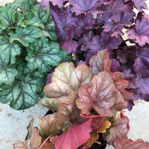 秋の寄せ植えは葉色の美しいものがいいな✨と ずっと欲しかったヒューケラをお迎えしました🎵 ホムセでたくさんの品種の中から悩みに悩んで選んだ3つ ほんとは全種類コンプリートして並べて眺めてみたい💦 あぁ広いお庭があったらなぁ… ちょっと詰めこみすぎたかな? 葉色の変化が今から楽しみ✨