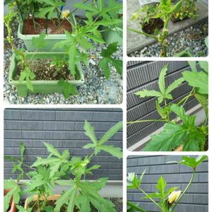 実家のオクラ💡 知らない間にこんなに成長してるじゃないですか!Σヽ(゚∀゚;) 下側の、背景が黒壁の方がキュアシートあり✨ 実の差は分かりづらいけど、葉っぱの感じはやっぱりキュアシートありの方が元気みたい🙌🌿