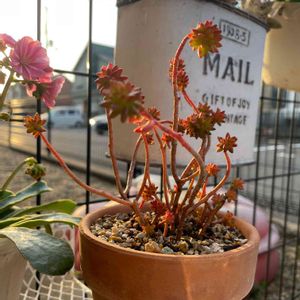 おはようございます(*^▽^*) 雅楽の舞いです♪ 久しぶりに登場させました! 丸い葉がとても可愛いです (*´-`)💕 この多肉ちゃんも増やして、寄せ植えにしたいです!! お迎えした時に比べて葉の枚数が増え、草丈も長くなった気がします。 ピンクの縁取り薄くなってしまいましたがこの状態も可愛いですね(*^^*)