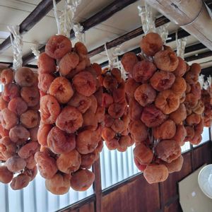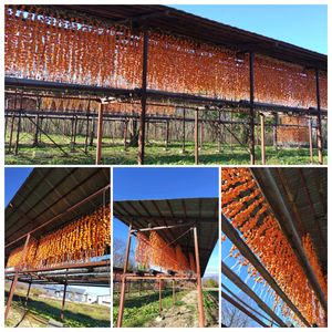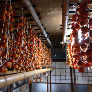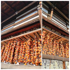 こんばんは〜😊 日はとっぷりと暮れました…😂 こちらは昔から、紅柿の干し柿の産地だとお伝えしてきました😌💦 そしてご近所に毎年、スゴい量の干し柿を干してる場所があるので、見に行ってきました⤴️⤴️ 1枚め…ハセと呼ばれる建物に、今年も一面、柿が干されています🙌💓 でも豊作だった昨年よりも、若干少ないような…🙄💦 2枚め…富有柿の木(甘柿)の収穫💓 1本だけある富有柿から実を採ってきました😉👌 3枚め…たわしがけ作業💓 練炭による乾燥4日目…次の作業工程はたわしがけです! 十分乾燥が進んだ柿から、清潔な亀の子たわしで、1個ずつ柿の表面を軽くこすっていきます😉👌 そうすることで、中の糖分が出てきて白粉で薄化粧したようになります(笑) 4枚め…たわしがけした柿は、廊下へ運び寒い場所で白粉が吹くのを待ちます👀💦 🏷️干し柿作り 今日もお疲れ様でした🙌💓