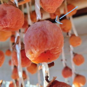 友人から渋柿を貰って ベランダに干してました。 (2枚目の写真は2週間前の) 丁度2週間が経ち 少し採ってみました。 柔らかくて甘くて 美味しいです😋 去年も、2週間位が柔らかくて美味しいと思いました。 デザートに毎日1人一個ずつ、家族で頂きます。