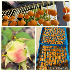 昨日も干し柿作りました🧡 ↙️バラ🌹ツボミ咲くかな💓