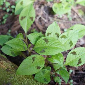 ミズヒキ(水引) 谷筋の湿った所に生えていて、葉に変わった斑があります🧐 名前は何でしょう🤔 皆さんに「ミズヒキ」と教えて頂きました🙇♂️ 花が咲く頃には斑が消えるそうです😊