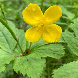 「ウ、次!」😊 マルい葉っぱ🟢の 真ん中が黄色💛な白いお花🤍✨ ⬆️山の中でこんな感じ ↘️咲いてまもない感じ ↙️もう咲き終わる感じ 5月27日 🤳