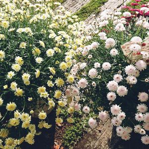 大好きなお花 ボンザマーガレット💕 左上だけは名前が???💦 右上は初めて花壇に🌼 何鉢かはもう花がらだらけになってしまったのでバッサリ✂️切り戻しましたが、この子たちはもう少し頑張ってほしいな😊