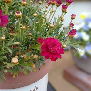 サントリーフラワーズさんのボンザマーガレット ルビーさん。 つぼみはまだありますが、ほぼほぼ満開でしょうか?? 初めて育てたボンザマーガレットさん…まさかこんなに大きくきれいに咲いてくれるとは昨年秋には思ってもみませんでした😊 もうしばらくきれいなお花を楽しませてね💕